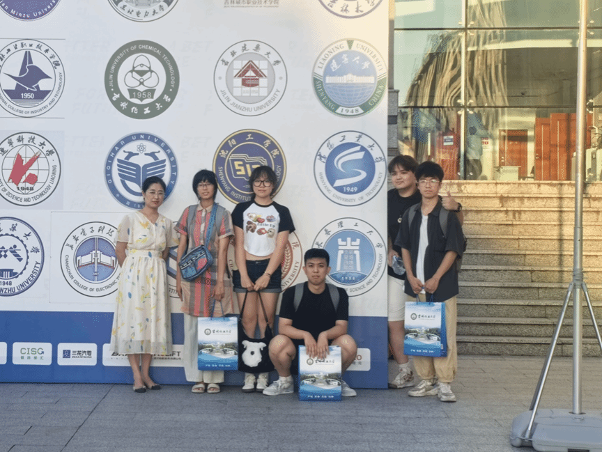 图 参赛队员与李丹老师(左一)赴吉林工业大学参加全国初赛